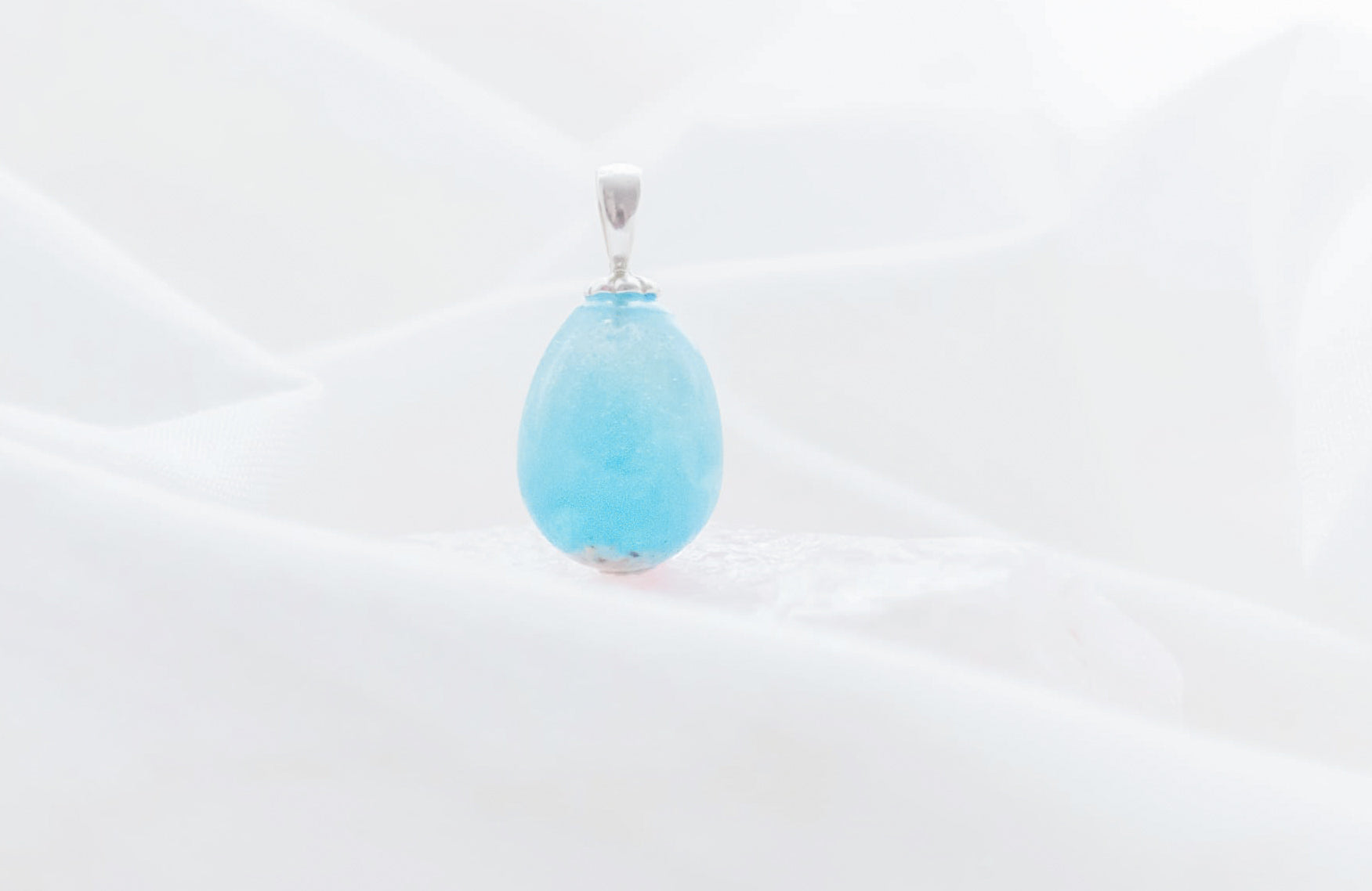 MATERIALS - Sterling silver bail with high quality epoxy resin 3d handcrafted pendant. Teardrop shape.